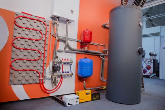 Косвенный бойлер подключен к стенду мини котельной. С помощью нашего тепловизора можно проверить качество тело-изоляции